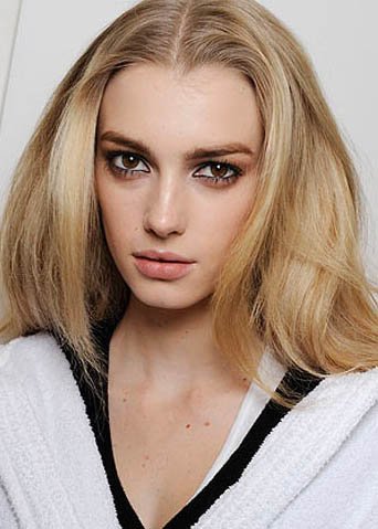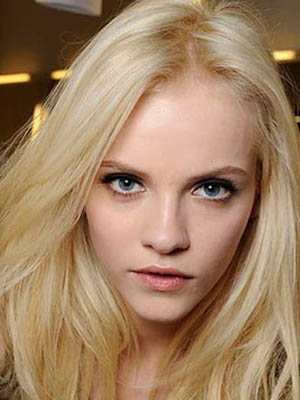 醒目的金发,同样搭配一款露额发型,动感的小脸很俏丽。