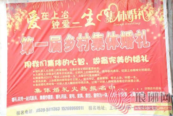这几天,费县上冶镇双邱村的农家女任庆萍一直在忙碌着,这位80后自筹20多万元,想在“五一”那天为本镇10对或更多对新人举办一场乡村集体婚礼,地点就设在镇上的小广场上,并借此机会向更多村民传递婚俗新风。