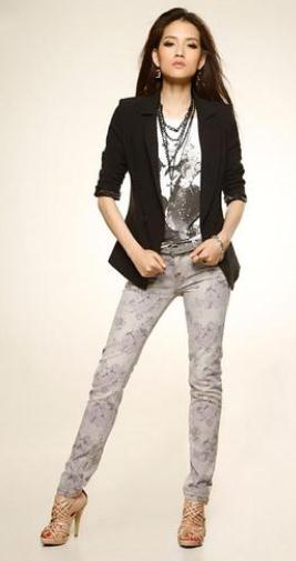 门襟处为假两件式的拼接设计,细格纹的反光面料,为一贯的优雅印象注入帅酷性格,前身修身的分割线处有三粒纽扣装饰,很好的与门襟相呼应,修身板型的小西装为都市中拥有独特个性和崇尚自由的时尚白领专属设计,为充满个性与幻想的自由主义者打造时尚前卫服饰。