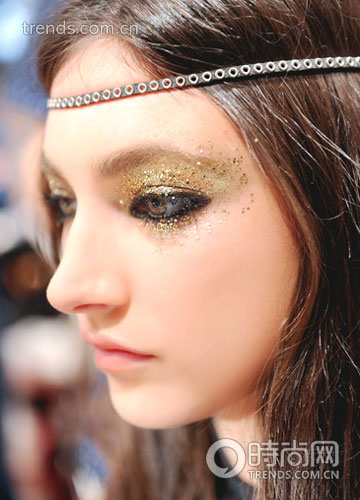 圆形的金箔贴在眼睑的中央,简约却不简单;还有那些金箔就像纹身贴纸一样,纹理每个都不尽相同。