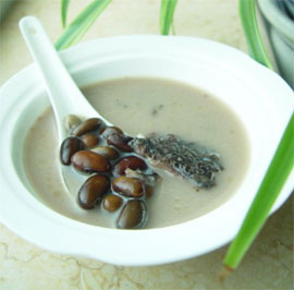 5、中火煮开后,撇一下浮末,然后放入姜片,倒入黑豆,以小火慢炖大约90分钟。时间是很长,但是这样的鱼汤才鲜美哦