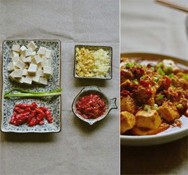 用料 :豆腐 、猪肉末、蒜 、老抽、豆瓣酱、姜、花椒粉 、酱油、湿淀粉(淀粉加少许水调匀)