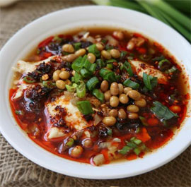 嫩豆腐、黄豆、葱、榨菜、酱油、陈醋、糖、盐、辣椒油、花生碎、植物油。