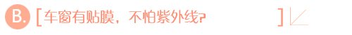 现在有车一族越来越多,很多人都给爱车车窗贴好了膜,如果是质量良好的贴膜,的确可以有效的反射和吸收紫外线。不过,对于前挡风玻璃,还是直射进来的紫外线还是要用心防护,比如可以考虑使用防紫外线镜,或者低倍数清爽防晒。