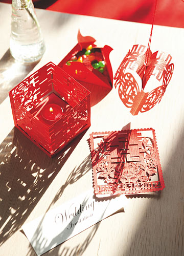 所以,当年轻的设计师房莹接触到婚礼喜帖设计师,第一个想到的便是中国传统的剪纸艺术作为设计的重要元素。中国的传统剪纸工艺均以红色为主体,不仅喜庆张扬,更释放出饱满的活力。与洁白传统的西式白色卡片相搭配,更彰显出中西结合的独具匠心,活泼又不失典雅。而剪纸作品上,手工制成的结婚日期与传统的红色大“喜”字交相呼应,更是透出一种传统工艺特别浪漫。