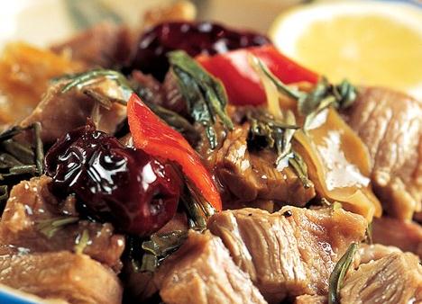 【原料】牛肉500克,酒50克,酱油75克,白糖25克,绿茶5克,红枣25克,葱段,姜片,植物油适量。