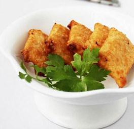 这道脆皮桂花年糕,是在原来炸年糕的做法上有了一点改良,用到了馄饨皮,粘上桂花糖,用蛋液裹上后,用中火略微煎一下,外脆香,内软糯,香甜可口,它不仅霸占了你的记忆,还霸占了你的味蕾,真是又放肆、又含蓄的惊喜。