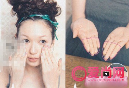 对于眼睛周围的位置,我们使用双手的无名指指腹在眼部周围轻轻的按压,动作一定够轻柔。