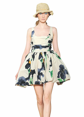 要想跟得上本季潮流,就得学会“不嫩也装嫩!”看看T 台上,充斥着碎花、轻柔蕾丝、格式花苞裙和娃娃裙。Versace 穿上粉蓝色的Q 版海底世界;上季在Louise Vuitton 秀上大演致命诱惑的Kate Moss,本季也摇身一变成了童话里走出的小公主;就连Alexander McQueen 也玩起针织小碎花;MoschinoCheap&Chic 淘气地缩短了蓬蓬裙变成公主小花苞,趣味温情的小碎花在T 台上大受欢迎。好像设计师们非要跟当前的经济形势唱反调,大演特演洛丽塔式洛可可,肆无忌惮享受着无忧无虑的童真般的奢华。就像电影里《绝代艳后》里无忧无愁的Marie Antoinette,穿着粉嫩精致的华服,肆意徜徉在温暖的后宫花园。话说回来,谁不想回到纯情的豆蔻年华,既然年华已逝,就让时装来满足你的梦想。穿上温情的碎花,伴上最温柔灿烂的春光,把美好的时光消耗在悠游自在的旅行中,给自己放一个回归童年的小假!