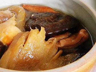 材料:水发鱼翅、水发鱼唇、水发蹄筋、鲍鱼、干贝、蛏干、目鱼干、水发冬菇、鸡肉、鸭肉、鸭胗、鹌鹑蛋、猪蹄、上排肉