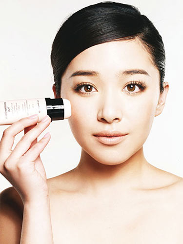 用隔离霜点在前额、双颊和下巴处,然后从鼻子向外涂匀,轻拍直到被完全吸收。乳液质地能增进皮肤的天然光泽,它是诱人的妆前乳。