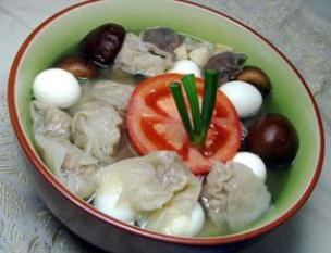 6、蒸熟的肉燕可以马上食用,也可以和其他配料一起煮。最著名的就是和鸭蛋还有海鲜一起煮,就是海鲜太平肉燕汤了哦,这个可是大宴上不可缺的。婚宴上大家只要看见这道菜上来,立刻心领神会,新娘新郎要开始敬酒了哦。