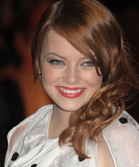 Emma Stone的闪亮卷发。HOW TO:每次吹干头发后觉得没有光彩且摸起来涩涩的?继续吹。柔亮且富有弹性的头发,绝对不是潮湿的。我们给你的tips是:在像往常一样吹干头发以后,再多吹5分钟,这个方法通常都很管用。
