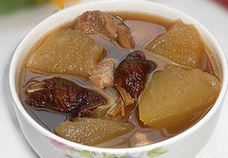 材料:冬瓜1块(1000克左右),猪腱600克,茶树菇50克,薏米半碗,盐适量。