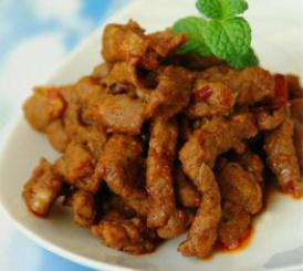 1、牛里脊要在冷冻的情况下,切成0、5厘米-6厘米左右的条。