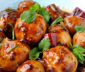 5、倒入水淀粉勾芡收汁,让每颗丸子都沾上豆豉酱汁即可出锅。
