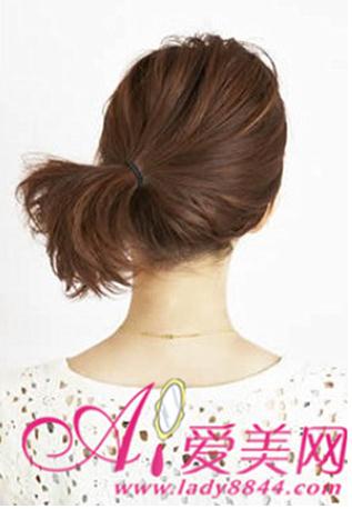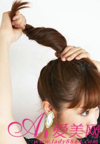 将所有头发扎起并扭转一圈。注意整个发型的抓松度,后脑勺部分要特别留意,避免过于紧绷,变得呆板