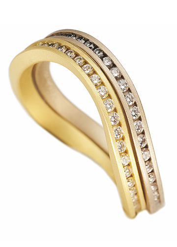 线条柔美,似清风吹过,在指尖留下最美的波型。错落排列的细密钻石在平坦的戒面上跌宕起伏,亦像爱的韵律,如涓涓细流,隐藏在细嫩指间。每一寸肌理,每一根线条,时而交叉,时而缠绕,细腻,柔软。