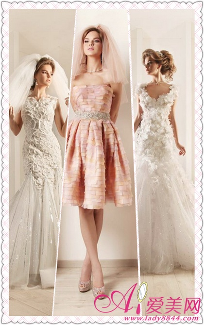 独特设计的婚纱,呈现花苞的裙摆是最近流行的款式。胸前皱褶的处理轻松让你的胸部更显丰满。