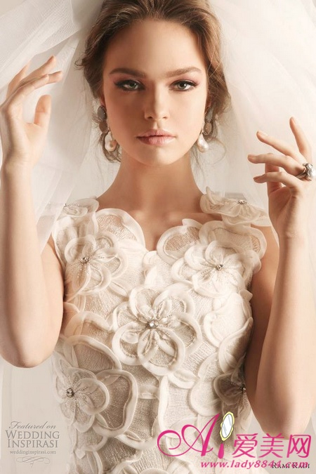 可爱的花朵装饰,淑女风格尽显的婚纱设计。