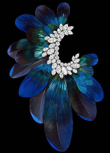此款Ultimate Adornment 时计独一无二,前所未有,镶嵌重达62克拉的钻石,并装饰14 根羽毛,可作为胸针或吊坠佩戴,是制表工艺与高级珠宝技艺完美融合的杰作,色彩与光泽微妙而和协,以不对称造型体现和谐优雅之美,令人惊叹,是艺术与羽毛镶嵌工艺的完美结合。Harry Winston重新演绎几乎被人遗忘的精湛工艺,展现其卓越高超的创作能力,以轻盈步伐体现时间悄然流逝,带来这一奇妙无比的精美作品。