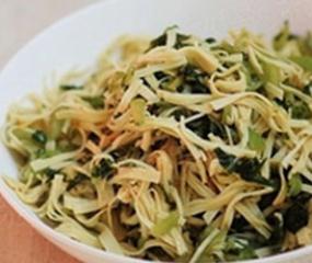 4、再加入咸菜炒均匀,如果咸味不够,可以加适量的盐。
