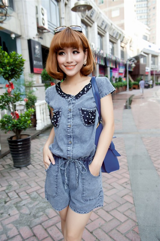 牛仔的连体也可以这么的甜美,小小的爱心装饰,腰部有松紧设计,上身效果真的很不错的哦