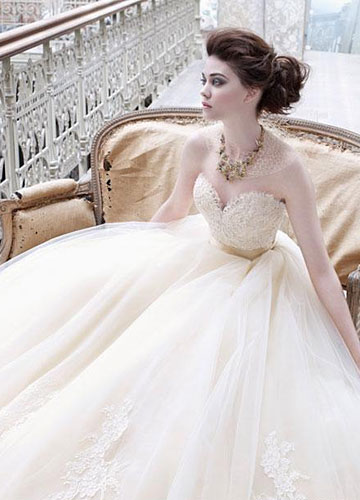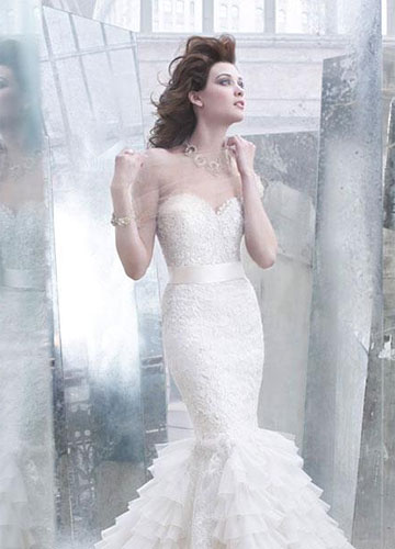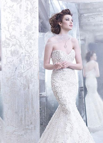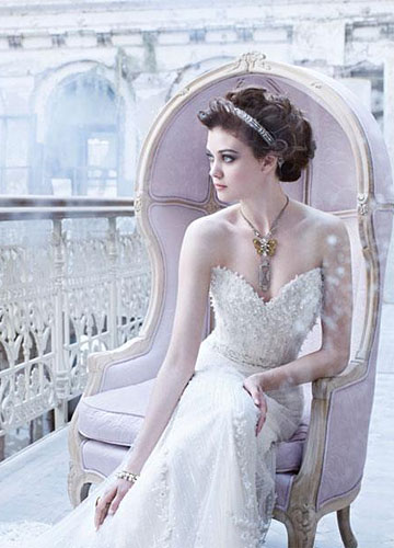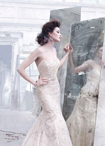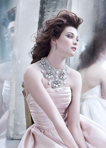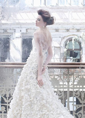 虽然名为2012秋冬季的婚纱礼服,却拉萨罗 (Lazaro) 的全新婚纱礼服系列却仍丝毫不会有厚重的感觉,修身的性感鱼尾裙、绽开的宽大裙摆、层层叠叠的立体花朵装饰,如童话般美得不真实。几款带着淡淡粉色的婚纱,更多了些甜美气质,造型精美的新娘珠宝,也是令整体更为完美的手段。偏好华丽、梦幻风格的你,是否会被这些如童话中走出的“公主新娘”而打动呢?