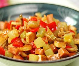 5、加入煎黄的香干丁一起翻炒拌匀,最后淋蚝油起锅即可。