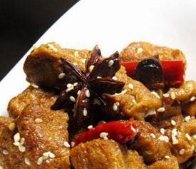 油豆腐,李锦记红烧汁,茴香2个,红辣椒2个,水,白芝麻