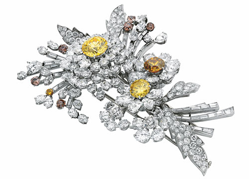 爱情无论在什么年代,无一例外,都是那么的美好。当初涉爱河的韦尔斯利大三学生玛德琳收到作为爱情信物的男大学生联谊会Theta Delta Xi 徽章,她的父亲恭喜这名幸运的男生“钉住了玛德琳”。一直到步入教堂,这枚徽章让她度过了使她在女友们面前飘飘然的大学最后时光。而最甜蜜的则是她收到先生送的结婚礼物,一枚嵌有祖母绿眼睛和红宝石鱼鳞的鱼型胸针,背面是一个表示无穷大的符号,这个暗示最终没有变成现实,当二十三年后他们的婚姻以离婚告终,但在这二十三年中,这枚胸针所寓意的爱情意味,足以成为珍藏一生的美好怀念。谈到胸针爱好者,不得不提到另一个女人,传奇女星伊丽莎白· 泰勒,胸针或许是潜藏在这个女人心底最温柔的记忆。她在和最爱的男人理查· 波顿的婚礼上,唯一佩戴的珠宝是一枚祖母绿钻石胸针;另一件1962 年理查· 波顿专门为她向Tiffany 订制的一枚硕大的海豚胸针,这件礼物让泰勒异常珍爱,因为该胸针的设计师正是当时有“珠宝诗人”之称的Jean Schlumberger,而泰勒是他的粉丝。1965 年理查· 波顿赠送的另一件由Jean Schlumberger 设计的钻石和蓝宝石镶嵌而成的 Fleur de Mer“ 海洋之花” 胸针,完美彰显其设计者的非凡艺术才华,并完美展现了其拥有者——伊丽莎白· 泰勒的迷人魅力之美。