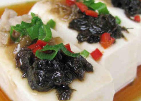 材料:豆腐350克、榄菜40克、肥瘦肉50克、大蒜10克、生姜5克、小葱两根