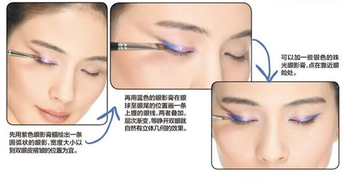 珠光蓝+紫,塑造几何形眼妆