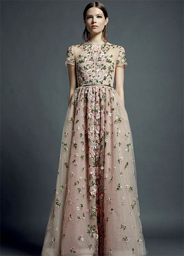 粉绿色的花朵散落在薄纱的裙摆,轻易如花仙子般的伴娘礼服。