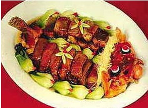 色香味: 鱼肉色白咸鲜,猪肉末色红质松,一菜双味。