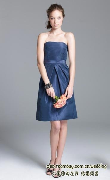 这款普兰色得伴娘服低调无比,绝对不会抢新娘的风头。