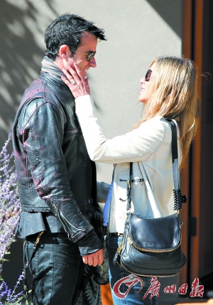 自公布订婚消息以来,珍妮佛·安妮斯顿便一直没有展示过订婚戒指,有传闻称其不满意戒指样式,更觉得被前夫布拉德·皮特送给安吉莉娜·朱莉的钻戒比了下去。近日,安妮斯顿与贾斯廷到墨西哥度假,外出时首度展示了其无名指上的巨型订婚钻戒。这位43岁的老牌美女轻抚未婚夫脸庞,巨型钻戒熠熠生辉(右图)。