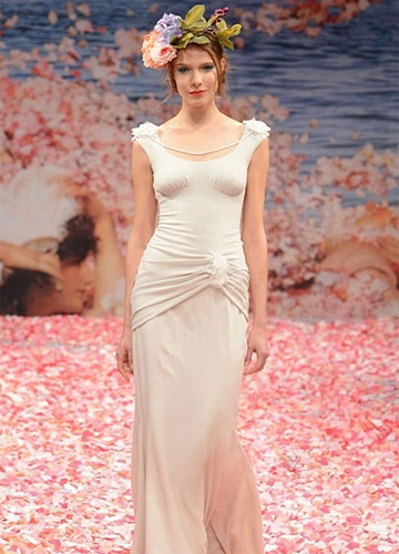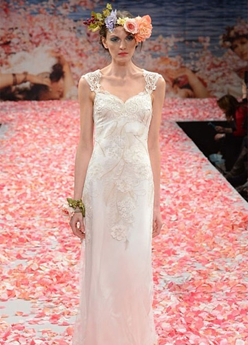 波希米亚的浪漫风潮近年来对婚纱影响颇深,Claire Pettibone2013秋冬婚纱更是将这一浪漫演绎到了极致。裙型一律采用高腰式背心裙设计,有些古典美。浪漫的蕾丝及轻薄的绣花面料营造出柔软、飘逸,极具女性柔美气质的氛围。浪漫之余,还有着些许的小性感,修身裙身曲线流畅,蕾丝裸背的设计令人浮想联翩。尤其是背部飘逸的绸缎,更使这份浪漫多了份潇洒。