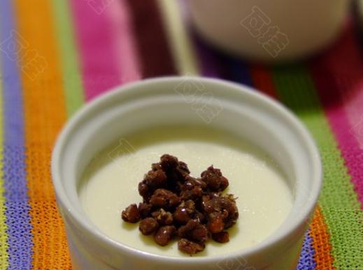6.取出后,撒上蜜红豆。或放入冰箱里冷藏3个小时后取出撒上蜜红豆食用