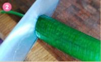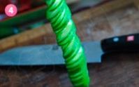 4. 切好的黄瓜轻轻地拿起来,像弹簧般,有点螺旋状。