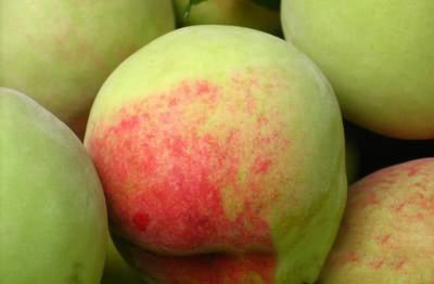 将桃子浸入滚开的水中1分钟,再浸入冷水中,取出用手很容易剥去皮。