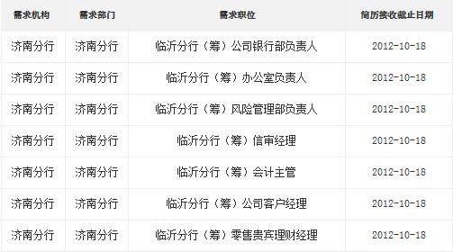 目前,经山东银监局审批同意中信银行筹建中信银行临沂分行,归属中信银行济南分行管辖。中信银行临沂分行(筹)将秉承“和谐发展、共同成长、精细合规、良性循环”的核心发展理念,充分发挥金融服务功能,以优质的服务和高度的社会责任感,为大美临沂建设做出积极贡献!为满足业务发展需要,中信银行临沂分行(筹)现诚邀金融英才加盟中信团队。