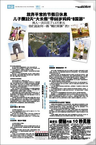游历8个国家,自然要精打细算,黄先生认为交通费占的比重最大,省钱当然要从交通费上省起。黄先生说,只有从泰国的曼谷到印度的加尔各答他们乘坐了飞机,其余都是选择的火车和汽车作为交通工具。